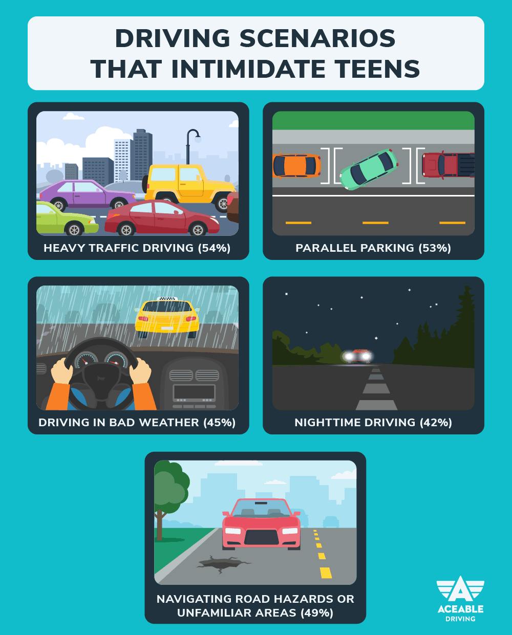 Here are the specific driving scenarios or maneuvers that new teen drivers consider the most intimidating: